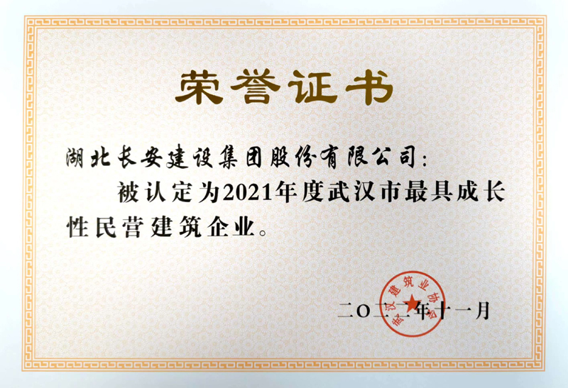 • 集團公司獲評2021年度武漢市最具成長性民營建筑企業