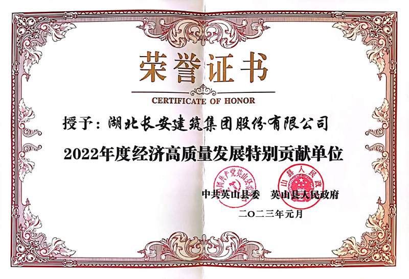 • 集團榮獲英山縣“2022年度經濟高質量發展特別貢獻單位”榮譽稱號
