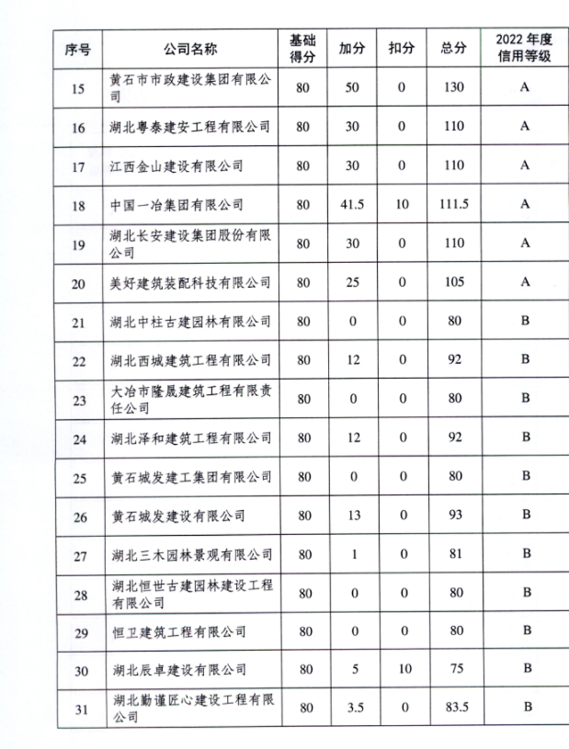 • 集團公司被黃石市住建局評為建筑市場主體信用A級單位