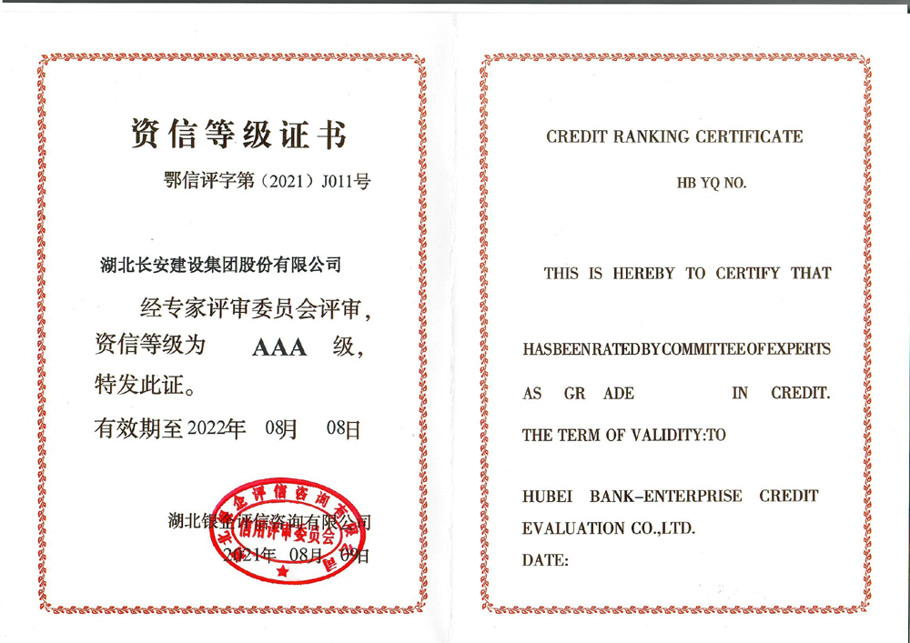 • 2021年資信等級AAA證書