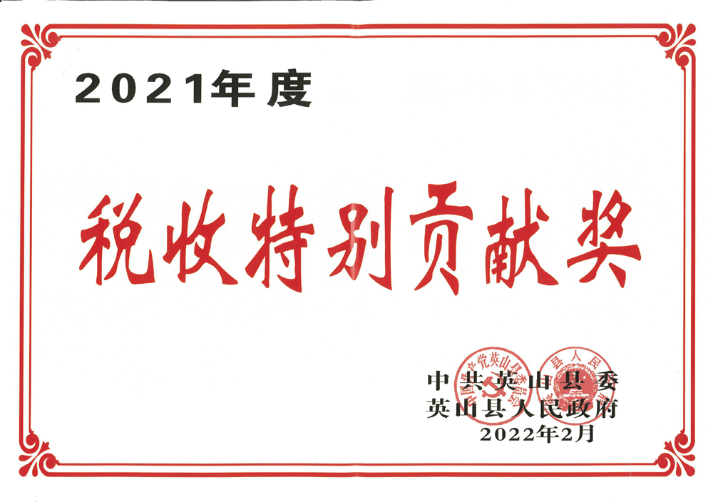 集團榮獲英山縣2021年度稅收特別貢獻獎
