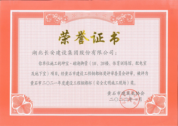 黃石坤寶?磁湖御景1#、2#樓項目榮獲結構優質工程和安全文明施工現場