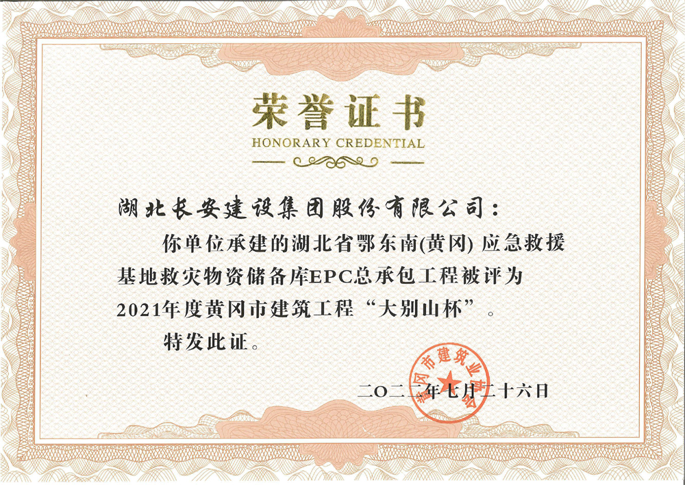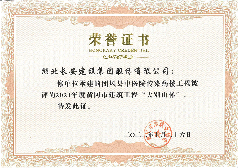 公司承建的4個工程被評為2021年度黃岡市建筑工程“大別山杯”