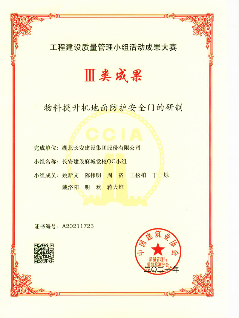 物料提升機地面防護安全門的研制(工程建設(shè)質(zhì)量管理小組活動成果大賽Ⅲ類成果獎)