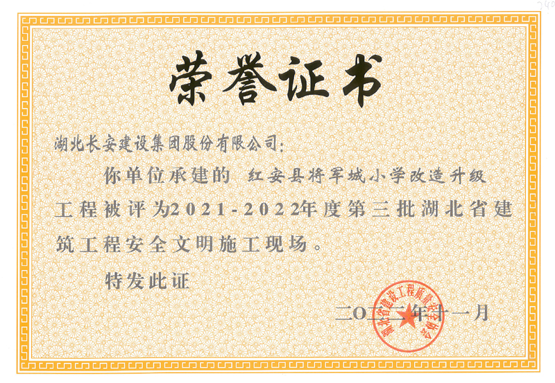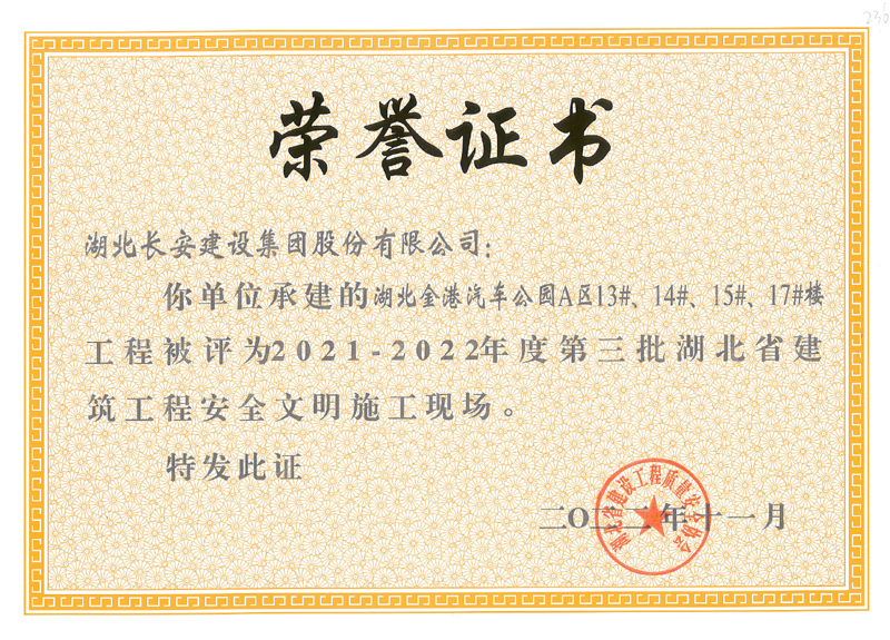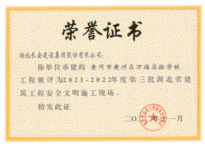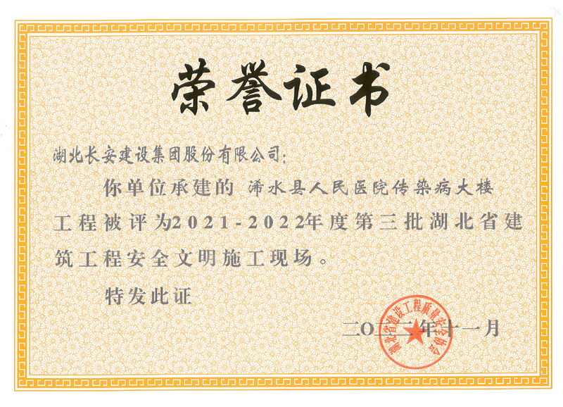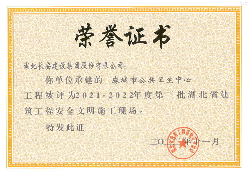 麻城市公共衛(wèi)生中心等8個工程項目榮獲2021-2022年度第三批湖北省建筑工程安全文明施工現(xiàn)場