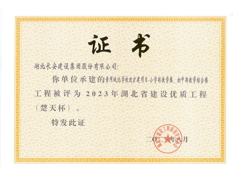 黃岡城北學校改擴建項目等11個工程獲評2023年湖北省建設優(yōu)秀工程(楚天杯))