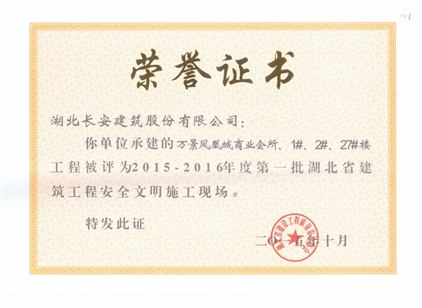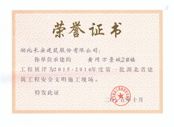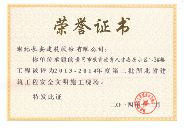 黃岡市教育優秀人才安居小區1-3#樓被評為2013-2014年度省建筑工程安全文明施工現場