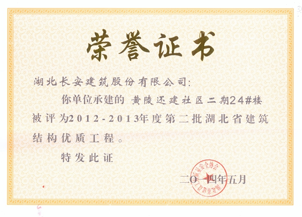 黃岡市教育優秀人才安居小區1、2、3#樓被評為2014-2015年度省建筑結構優質工程