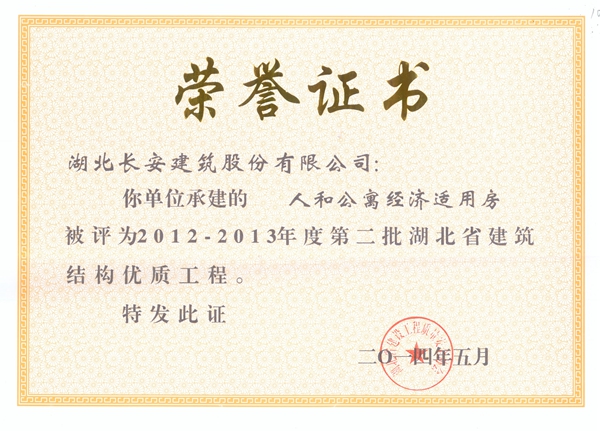 人和公寓經濟適用房2012-2013年度省建筑結構優質工程