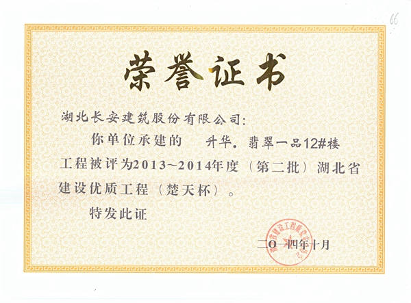 升華翡翠一品12#樓2013-2014省建設優質工程(楚天杯)