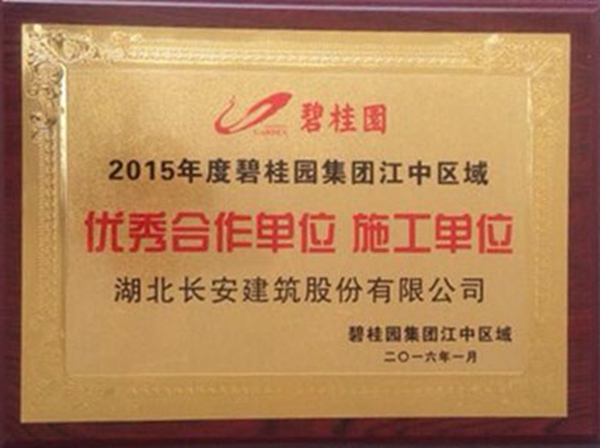 2015年度碧桂園集團江中區域優秀合作單位、施工單位獎牌