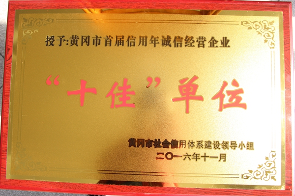 授予黃岡市首屆信用年誠信經營企業“十佳”單位(2016)