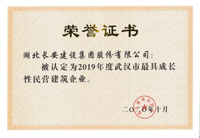 2019年度武漢市最具成長性民營建筑企業(yè)