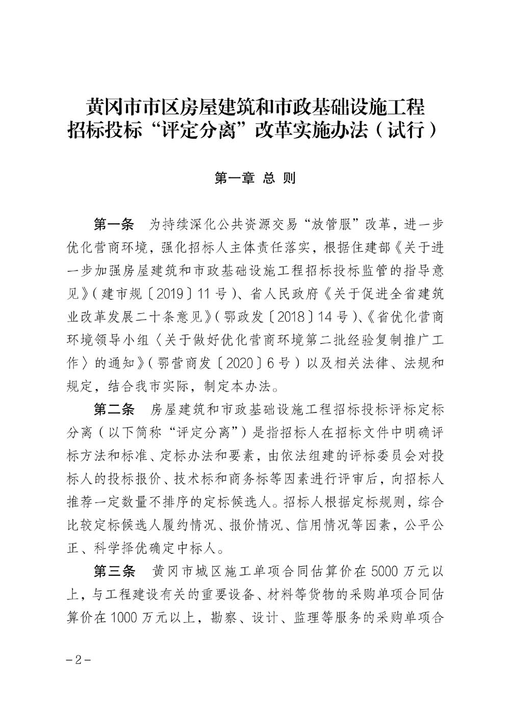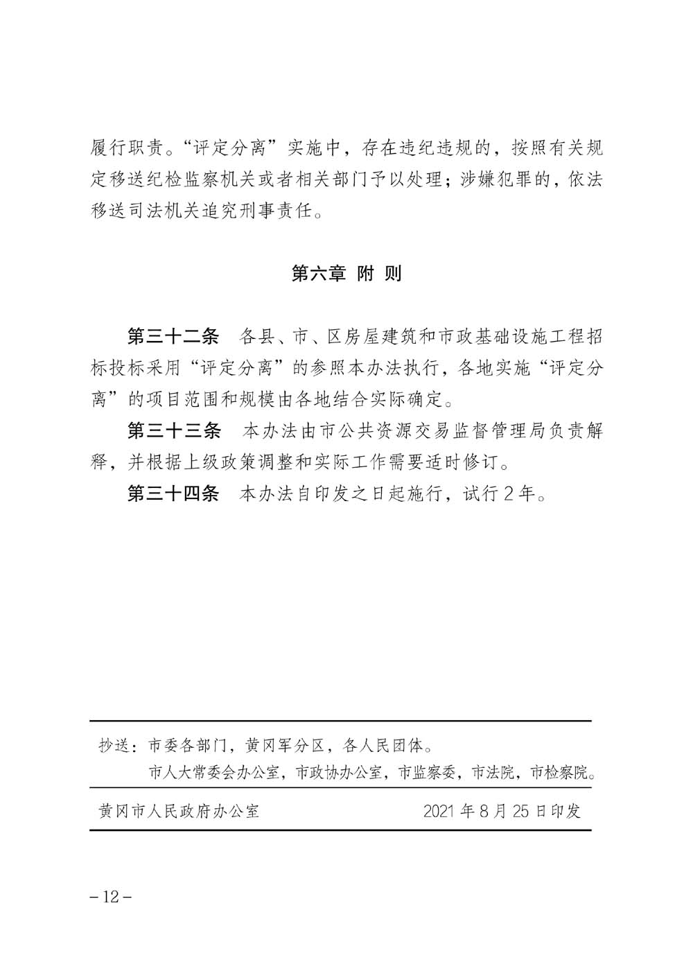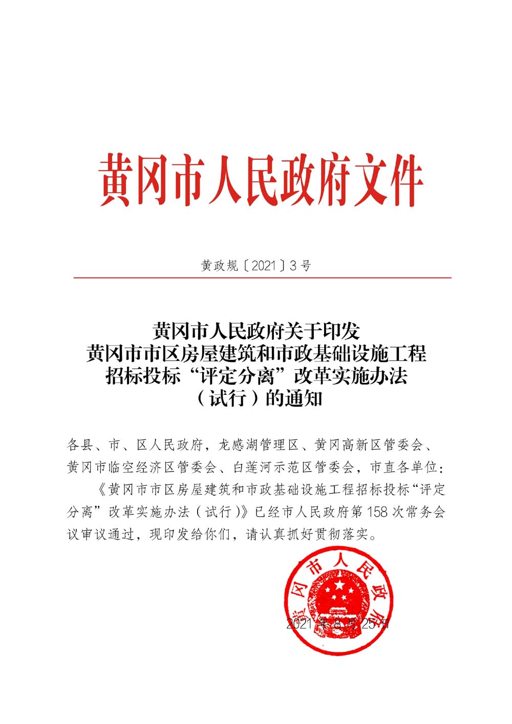 黃岡市人民政府關于印發黃岡市市區房屋建筑和市政基礎設施工程招標投標“評定分離”改革實施辦法(試行)的通知