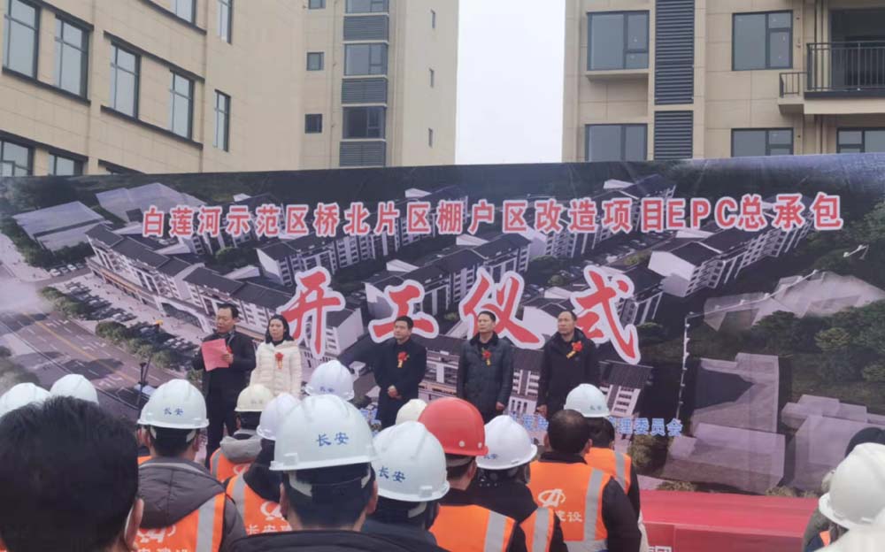 隨著震天響的炮竹轟鳴,白蓮鎮、白蓮河鄉、示范區各級領導、長安建設集團總經理葉發保以及集團公司設計院、分公司經理、一線經營負責人與項目部員工共同見證了項目開工盛況,邁出了棚戶區改造項目的第一步,實現重大項目建設“開門紅”。