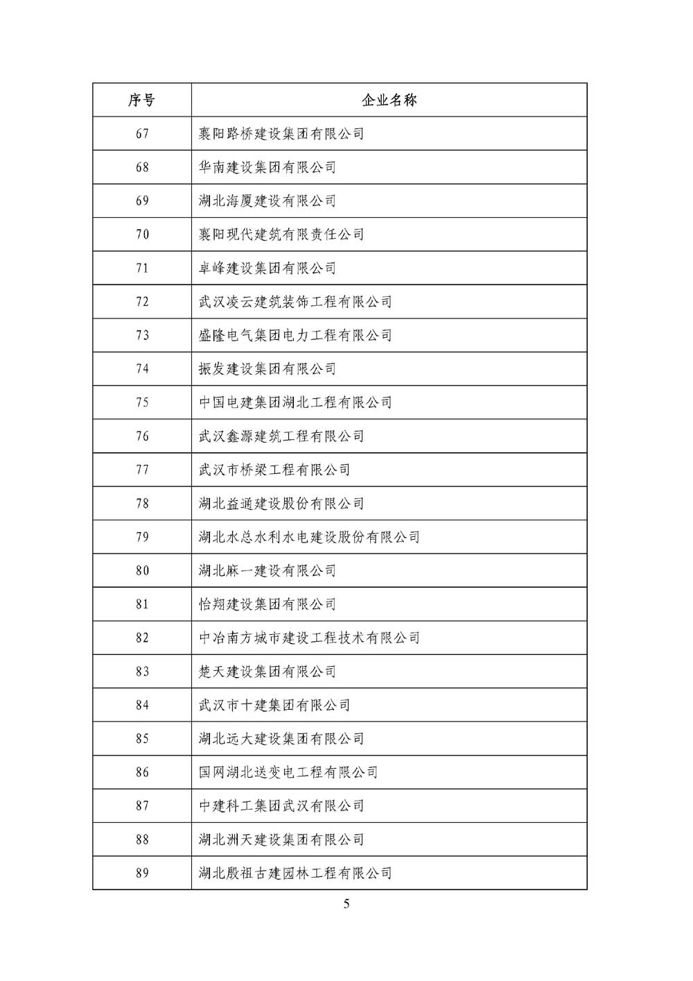 湖北建筑業的快速發展離不開全省建筑同仁的共同努力奮斗,其中中建三局集團有限公司等20家企業作出了突出貢獻,中鐵十一局集團第四工程有限公司等95家企業作出了重要貢獻。