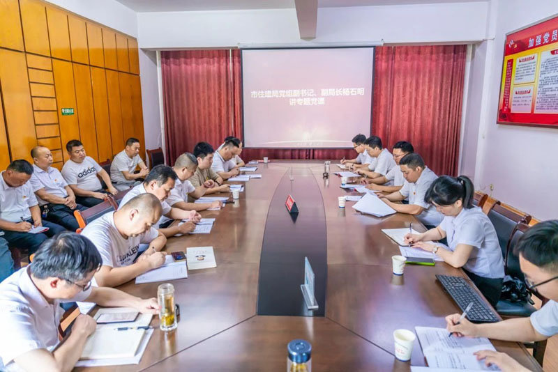 在長安建設集團黃岡分公司完成有關活動后,全體黨員立即返回質安中心,開展了黨建聯系點領導講黨課活動。市住建局黨組副書記、副局長楊石明以“忠心永向黨,建功新時代——以質安擔當推動黨的二十大精神落地見效”為主題給全體黨員講了一堂專題黨課。