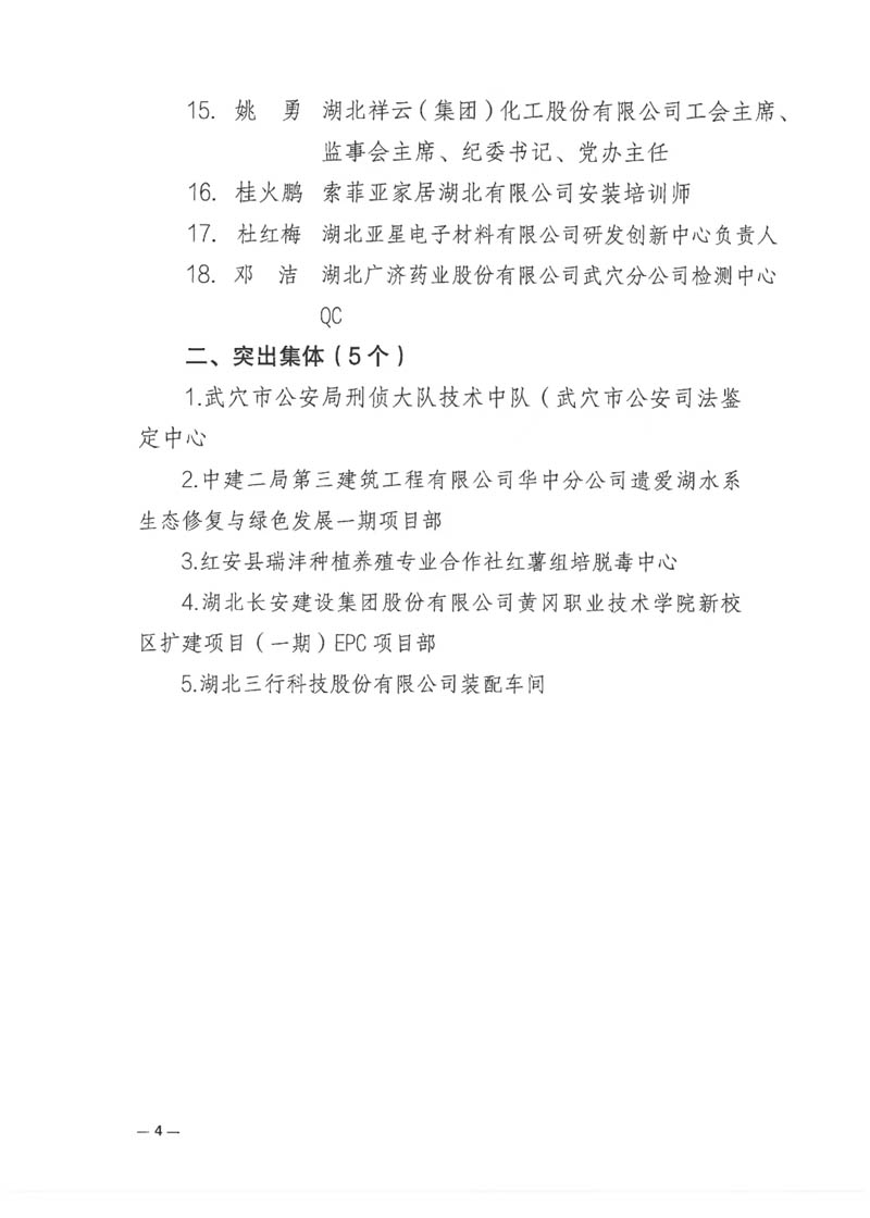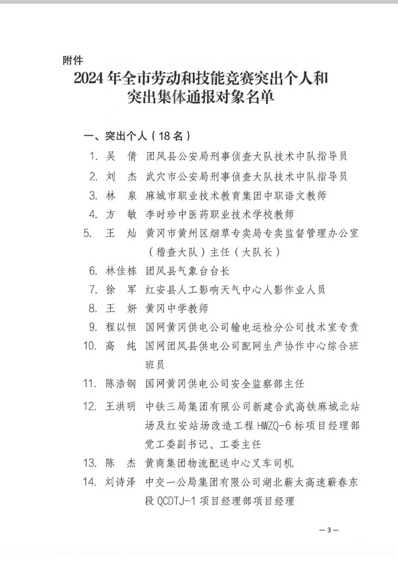 3月5日,黃岡市總工會發布《關于2024年全市勞動和技能競賽突出個人和突出集體的通報》,對在2024年勞動和技能競賽中表現突出的18位個人和5個集體進行通報表揚。集團公司“黃岡職業技術學院新校區擴建項目(一期)EPC項目部”被評為“突出集體”,同時認定為“黃岡市工人先鋒號”。