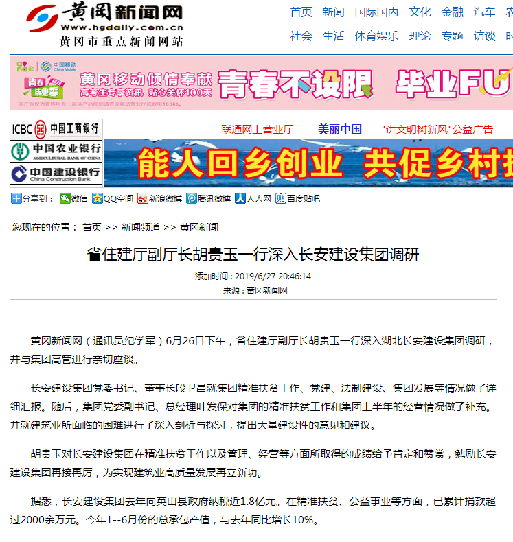 省住建廳副廳長胡貴玉一行深入長安建設(shè)集團調(diào)研