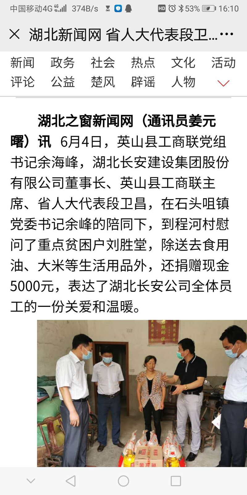 集團黨委書記、董事長段衛(wèi)昌給貧困戶捐款5000元助力脫貧攻堅